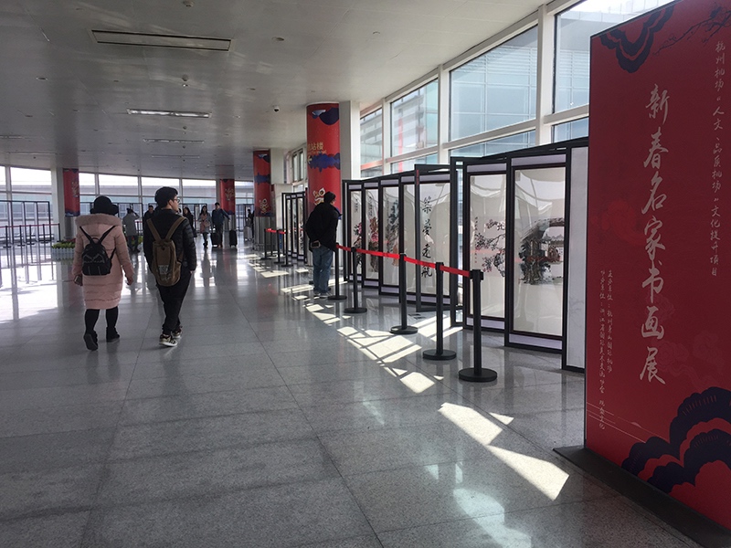 2018年2月11日,為營造濃郁的機場文化藝術(shù)氛圍,著力打造人文機場、品質(zhì)機場,航站區(qū)中心利用T1、T2連廊打造文化藝術(shù)長廊,并聯(lián)合浙江省國際美術(shù)交流協(xié)會推出2018年美麗浙江新春書畫作品展作為首秀。本次新春書畫展以“美麗浙江”為主題,匯集了全省50位書畫界大師作品。