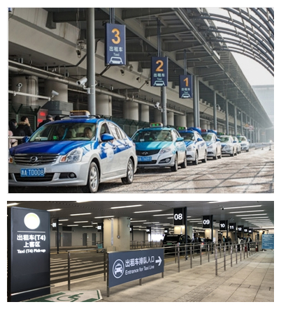 杭州蕭山國際機場共有2處出租車專用上客區,其中: