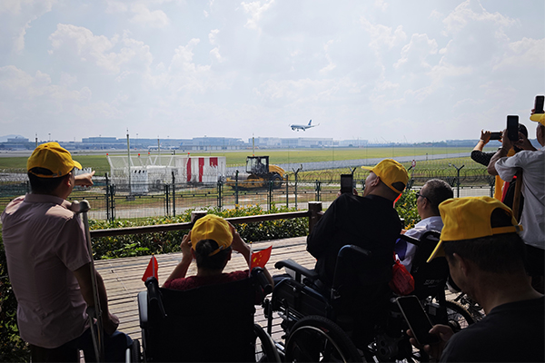 9月26日,在杭州機(jī)場公司黨群部、團(tuán)委組織下,余杭區(qū)30余名殘疾人走進(jìn)杭州機(jī)場。在飛行區(qū)、航站區(qū)團(tuán)委志愿者的全程陪伴下,大家第一次體驗(yàn)乘機(jī)流程,感受飛機(jī)起降的震撼,圓夢心中向往已久的“飛行夢”。