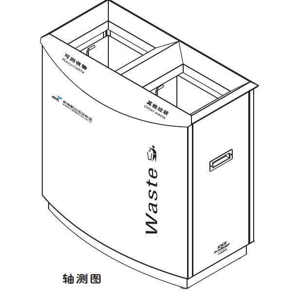 一、第三章 “不銹鋼垃圾桶技術(shù)要求”中的第2條“垃圾桶外觀:參照T3航站樓隔離區(qū)內(nèi)款式”圖片中垃圾桶標(biāo)識不清晰,現(xiàn)將標(biāo)識內(nèi)容補(bǔ)充如下: